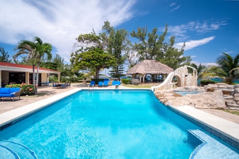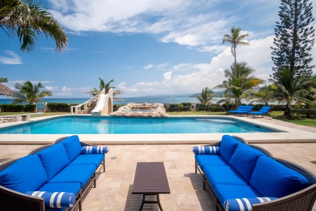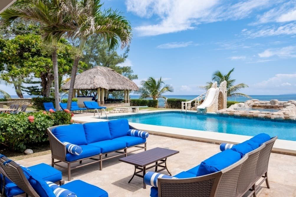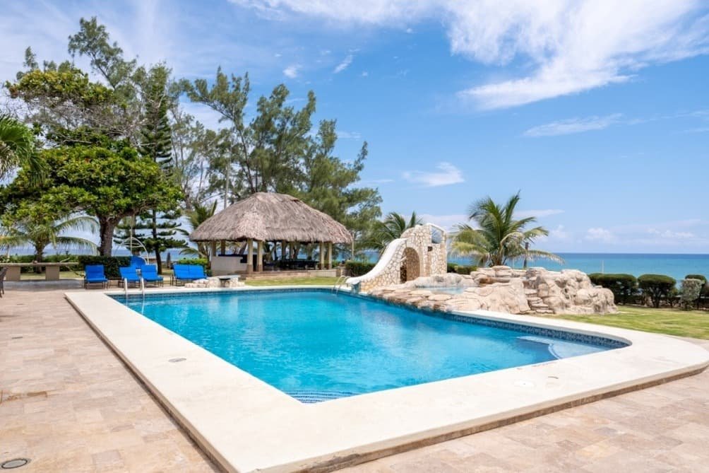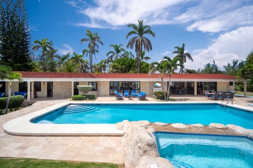 This estate offers four spacious, air-conditioned bedrooms and four and a half bathrooms, making it a perfect retreat for families or groups seeking privacy and comfort. Just minutes from one of the island’s most famous natural attractions, it’s ideal for day trips and exploring the island’s beauty.