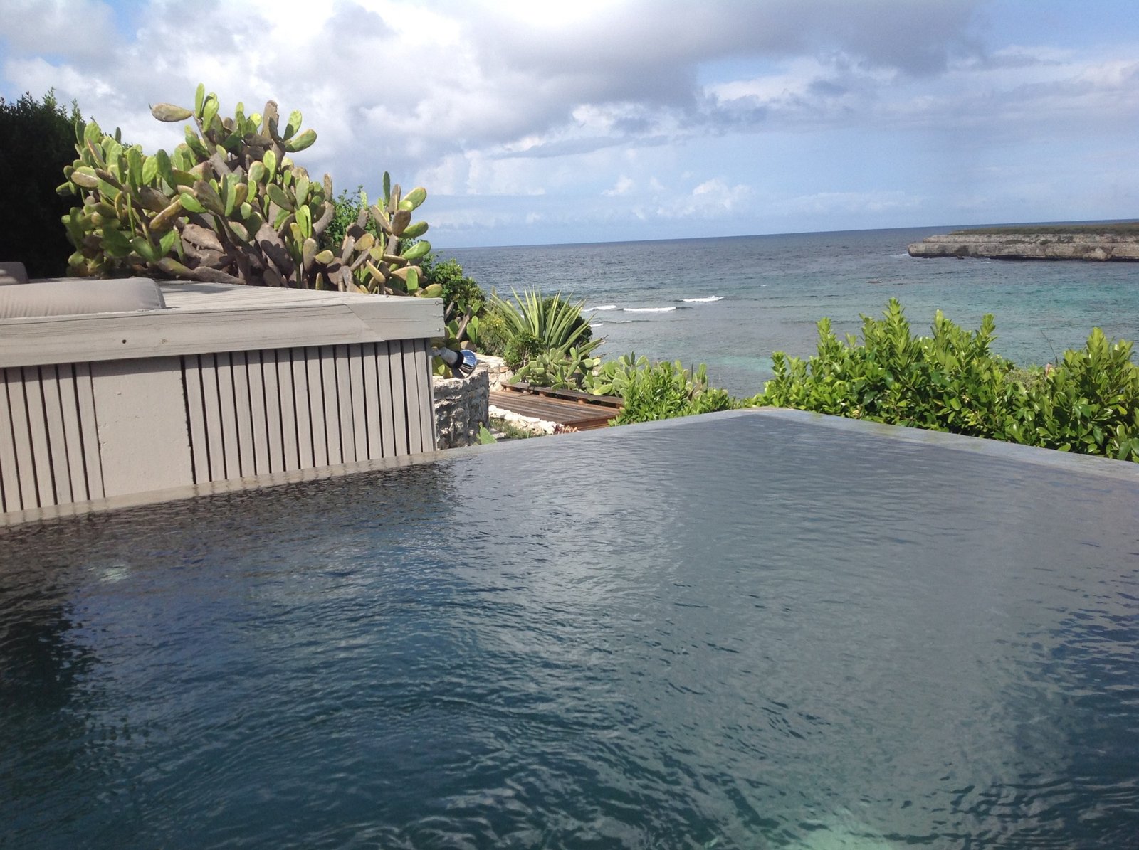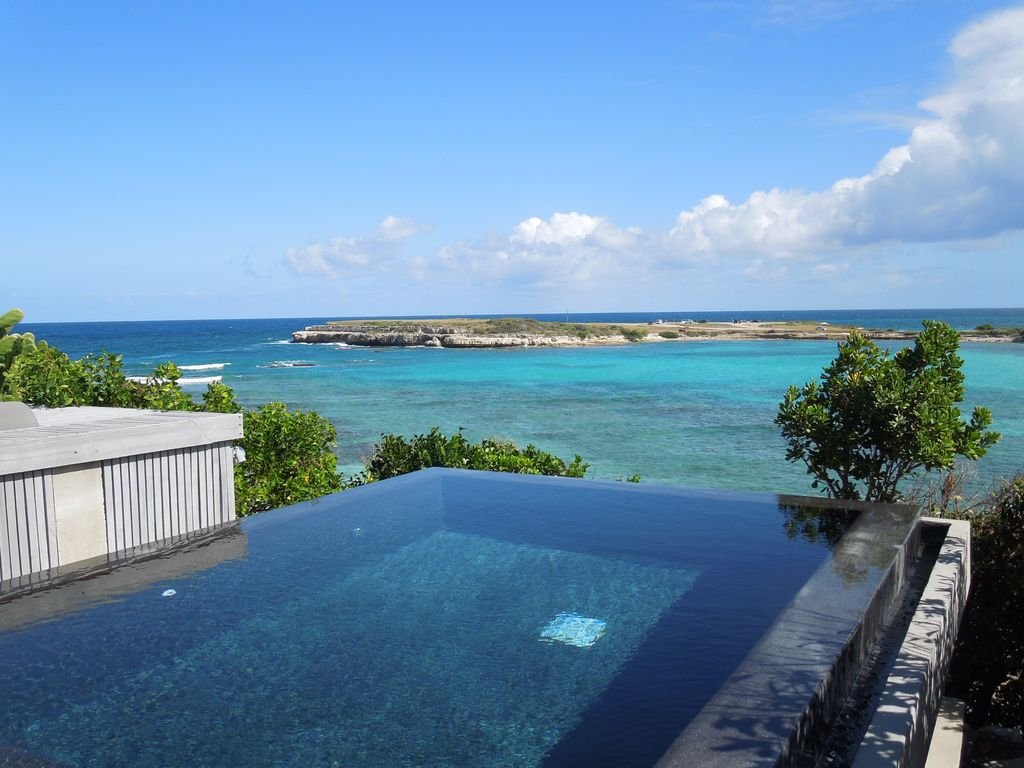 Perched atop a gently elevated headland with private access to a tranquil, reef-protected turquoise bay, this contemporary two-bedroom residence enjoys sweeping views of the Indian Town National Park promontory—an area of exceptional natural beauty—and the endless horizon of the Atlantic Ocean beyond.