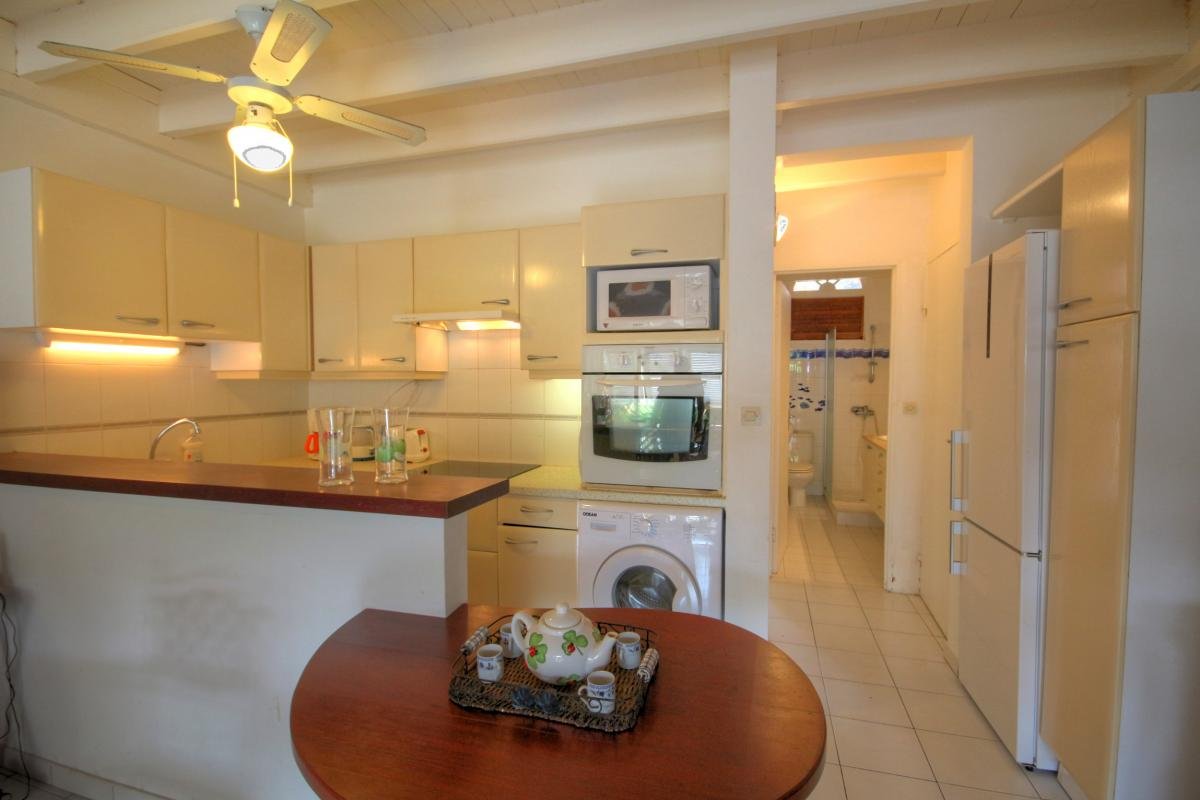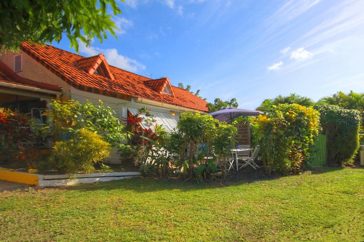 Nestled in a quiet residential area surrounded by lush greenery, this comfortable villa is part of a small complex of adjoining homes just a short walk from the beach. One of Martinique’s most stunning sandy beaches is only 300 meters away, with many others—including the famous southern shores—just a short drive away.