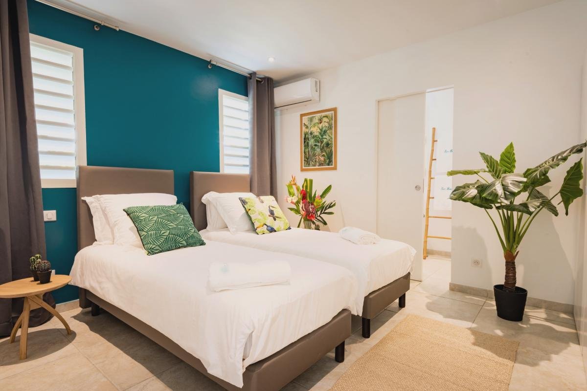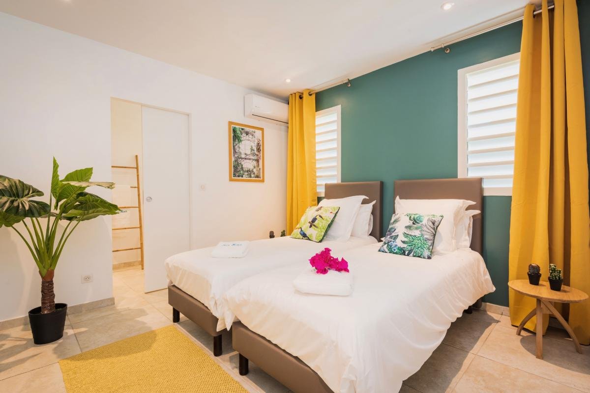 One double bedroom with two single beds (80×200) and a private en-suite bathroom.