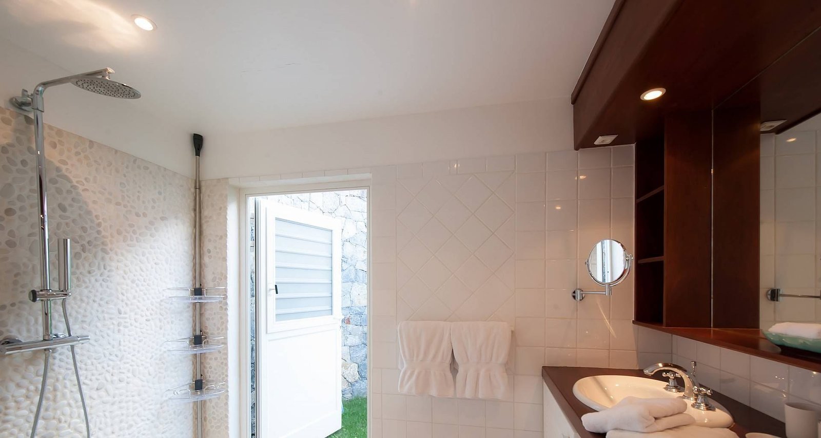 The main living area flows seamlessly onto a covered terrace and a sun-drenched pool deck, creating ideal spaces for both shade and sunshine. Each of the three bedrooms includes a private en-suite bathroom and enjoys uninterrupted sea views, ensuring comfort and privacy for all guests.