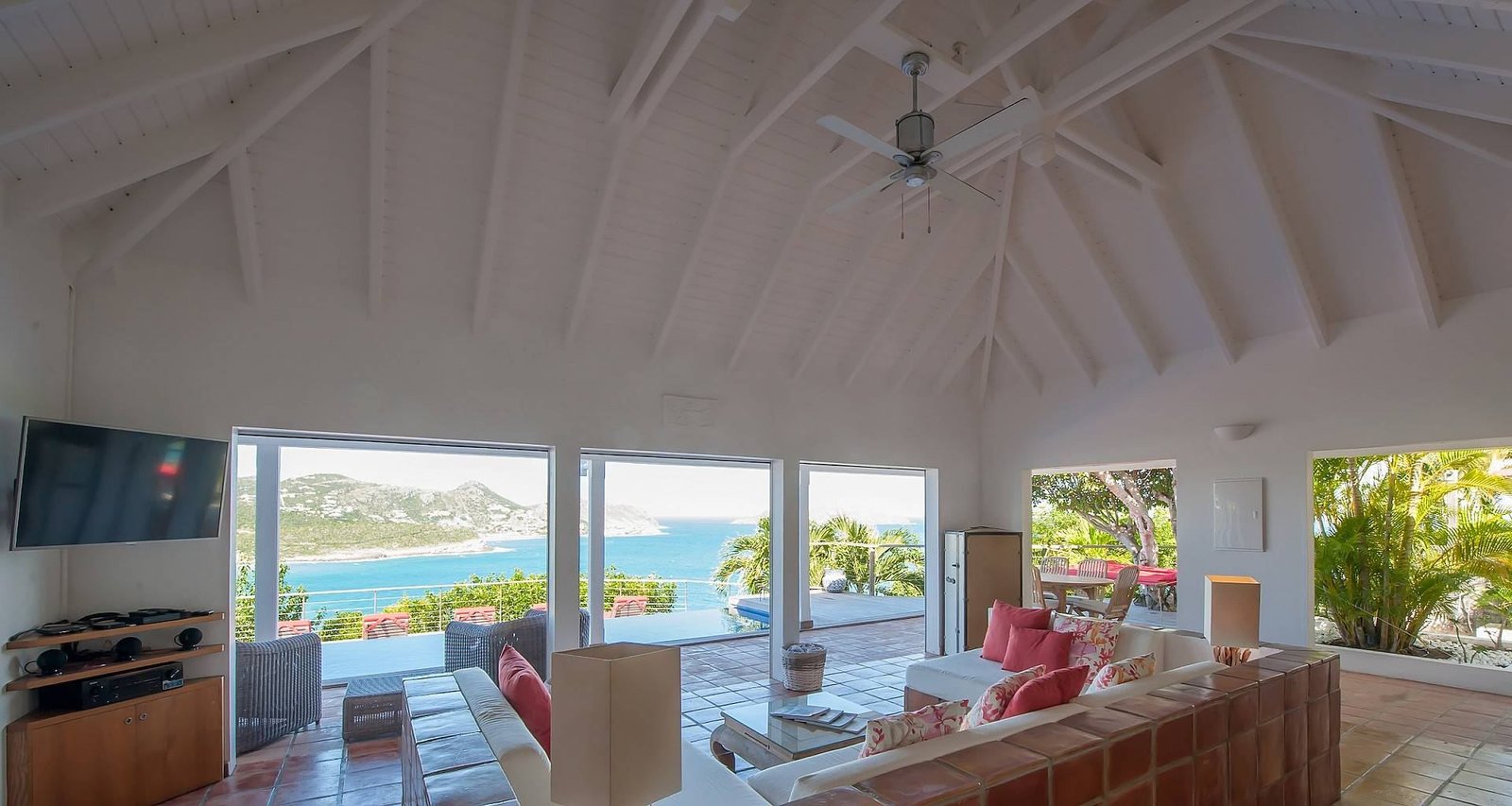 With sweeping panoramic views over the bay, this colorful residence is a true Caribbean dream, vibrant both inside and out. The blue expanse of the Atlantic stretches toward the horizon, while palm fronds and tropical greenery sway in the breeze. Inside, bright hues add warmth and charm, perfectly complementing the relaxed island atmosphere.