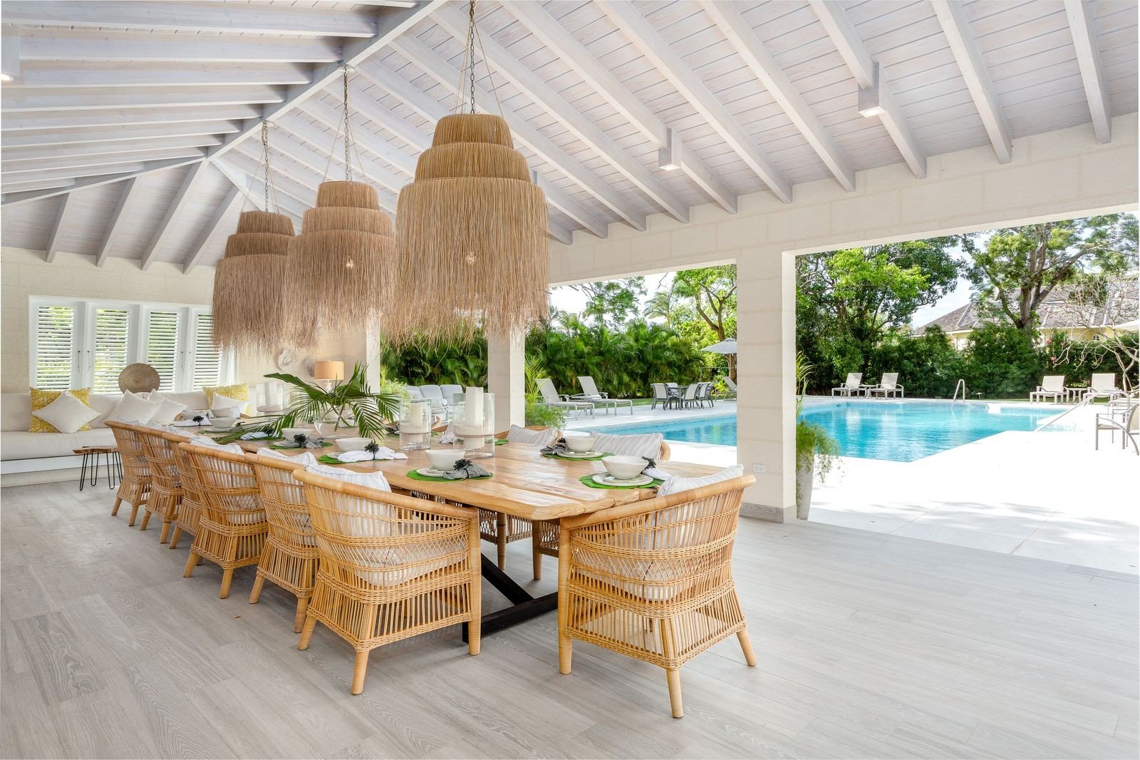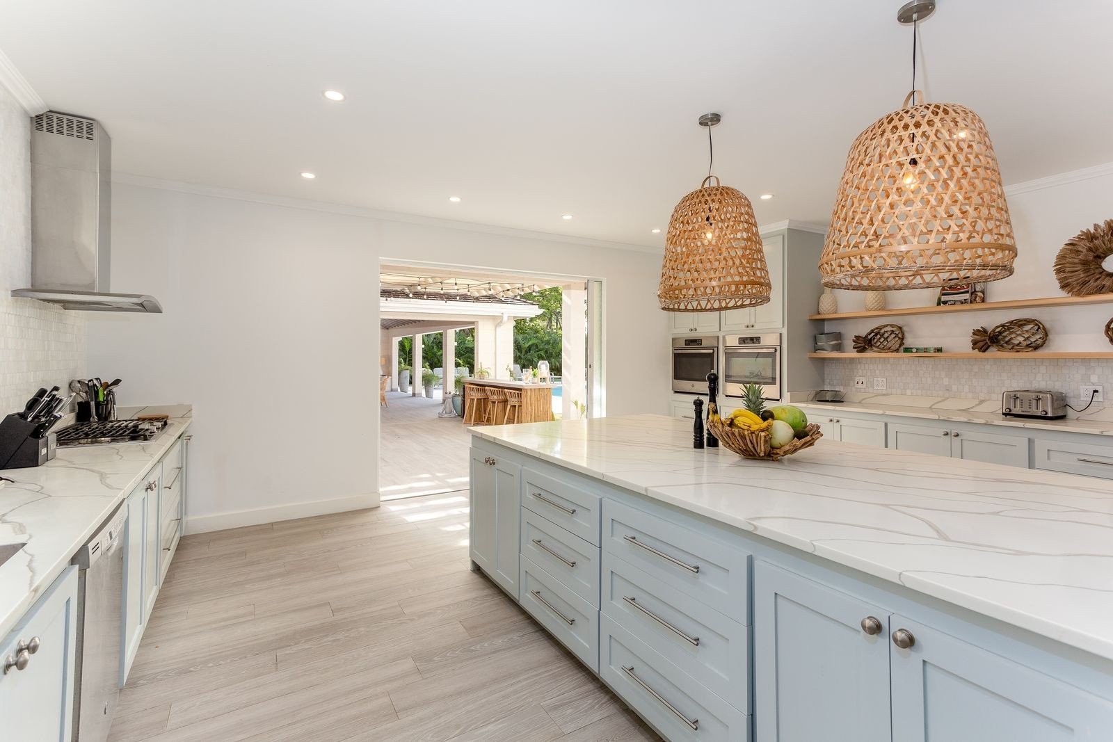 Recently renovated, this elegant residence offers open-plan living and dining areas that flow seamlessly onto a spacious pool terrace framed by lush tropical gardens. On the main level, three air-conditioned guest suites are complemented by a family and media room, a formal dining room, a modern kitchen, and a convenient staff and laundry area.