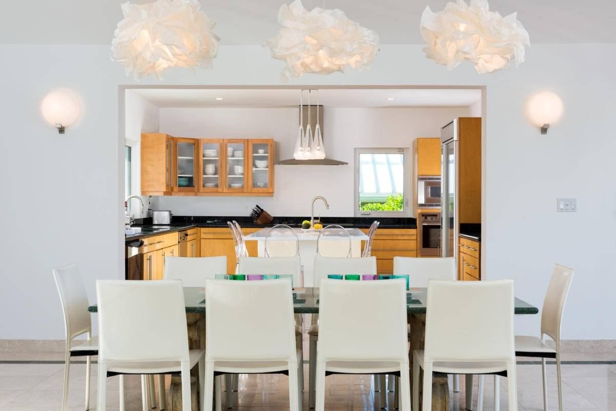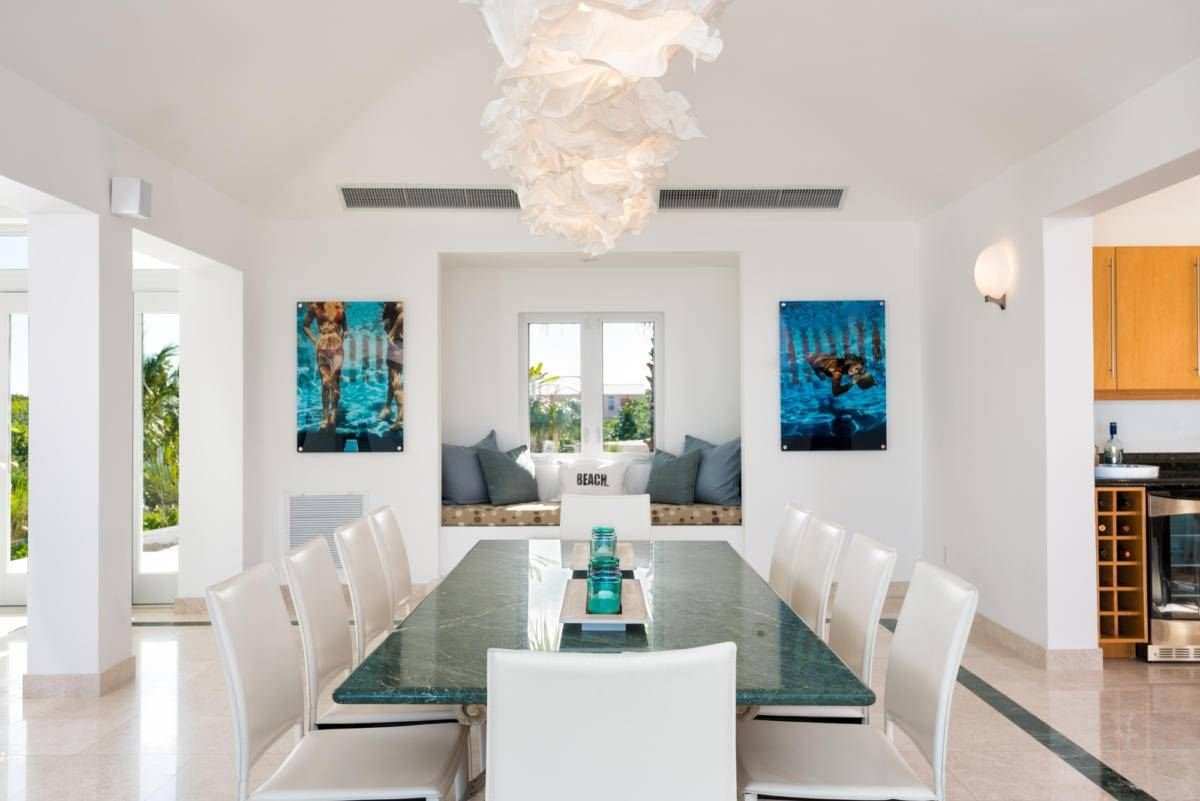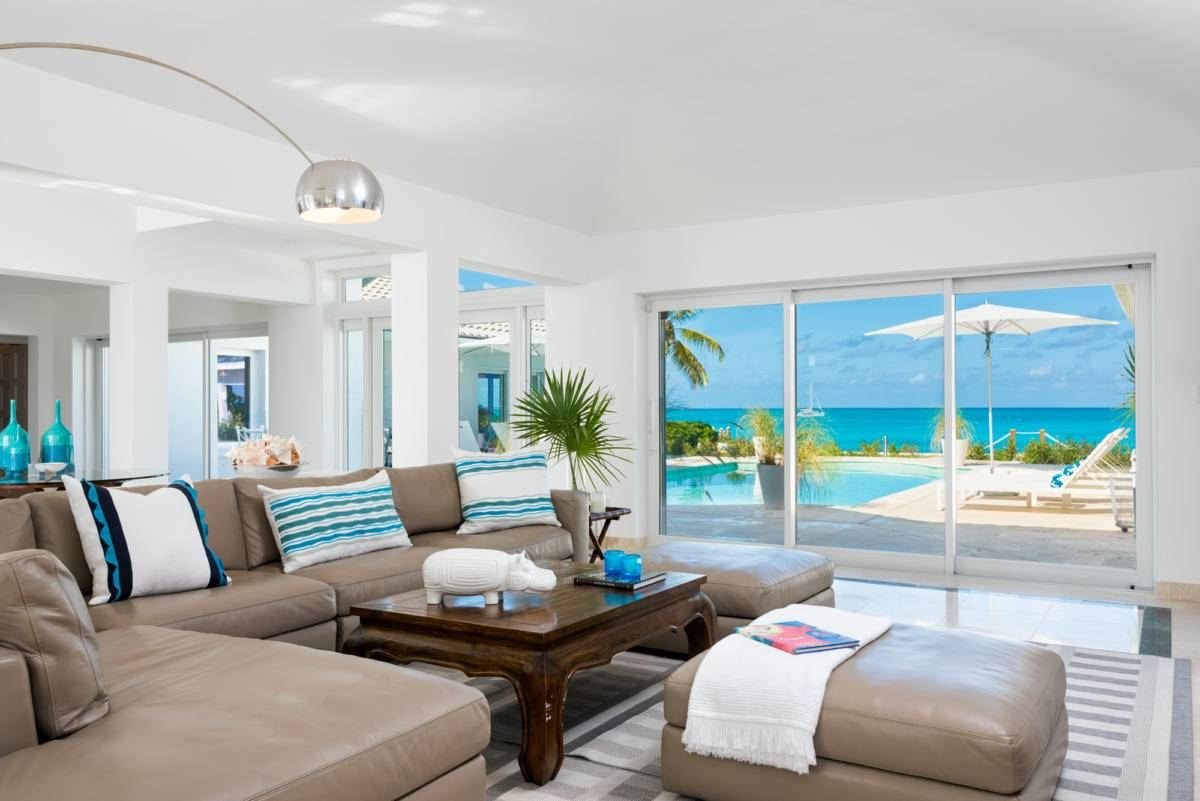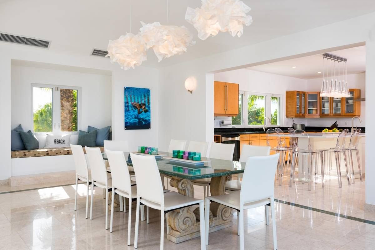 Inside, the home is styled with high-quality furnishings chosen for their fresh, modern appeal, all oriented to capture breathtaking ocean views. Outdoors, guests can relax by the heated pool with Wi-Fi access and a poolside music system, gather for meals in the dining and grill area, or end the evening around the glowing fire pit, enjoying the beauty of the Caribbean night.