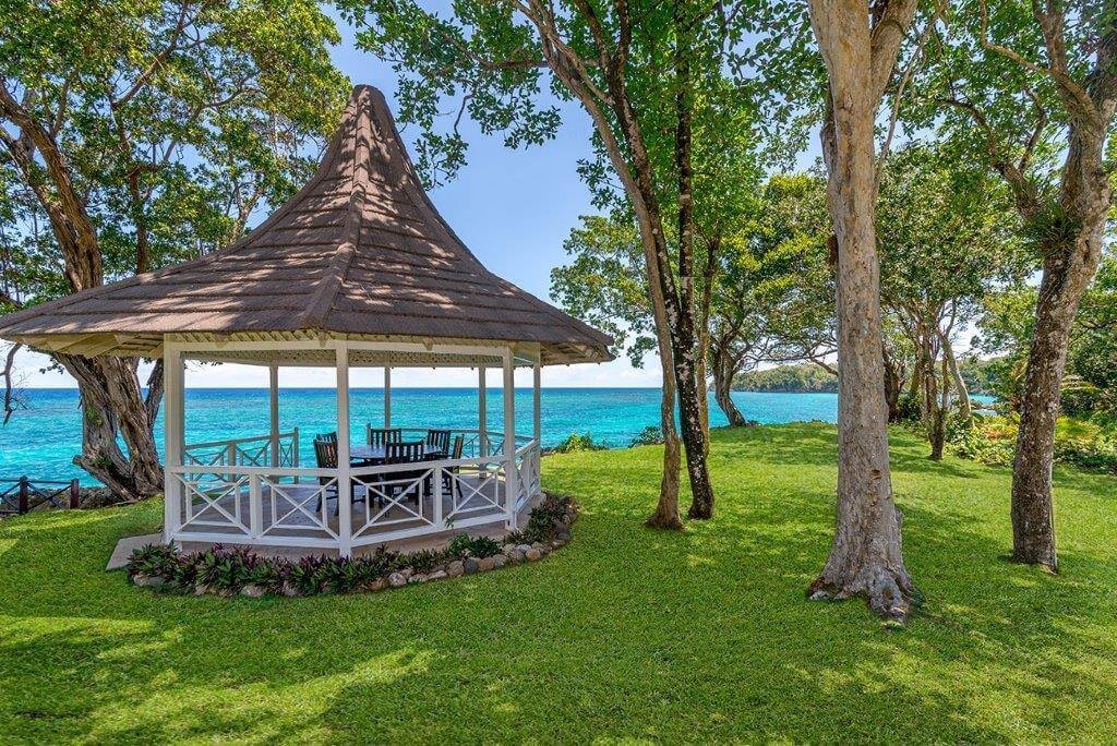 Just a few steps away, a peaceful gazebo offers the ideal spot for morning coffee or evening cocktails. Inside, the home features a sunken living room, satellite TV, high-speed internet, and a fully equipped kitchen.