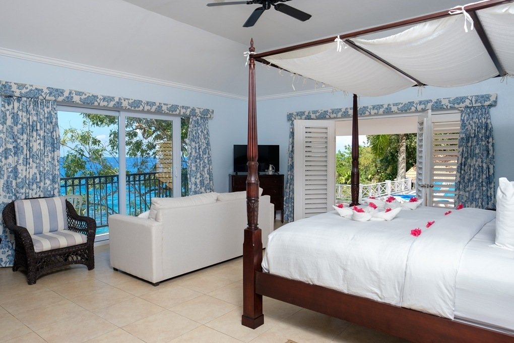 This magnificent 15-bedroom waterfront retreat spans six private acres and accommodates both intimate getaways and large gatherings with ease. Set on a gentle rise overlooking a palm-fringed white sand beach and the shimmering Caribbean Sea, the property provides breathtaking coastal and sunset views along with easy access to exceptional snorkeling and diving reefs.