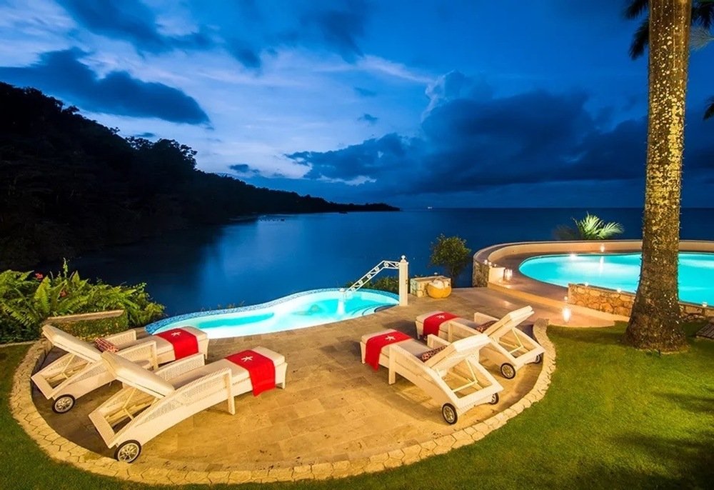 This breathtaking oceanfront luxury estate is set on 14 acres of private tropical grounds featuring lush gardens, winding rivers, cascading waterfalls, and direct access to the sea. The setting offers one of the most exceptional and exclusive villa experiences available.